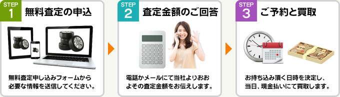 川田タイヤの無料査定なら中古タイヤ・ホイールなどのメーカー、サイズで概算価格をお知らせいたします。